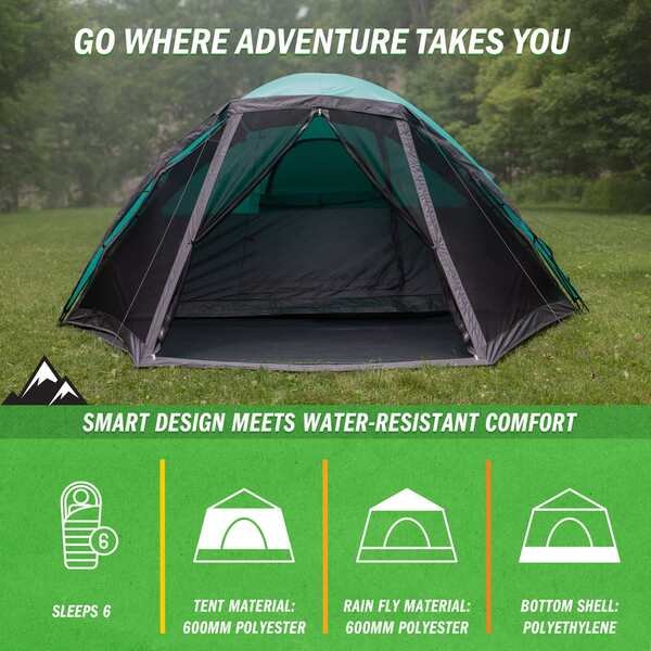 6 Person Tent with Screen Room, Teal, Wakeman Outdoors, Mfr#: 75-CMP1120