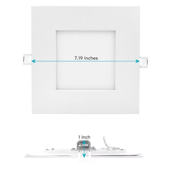- •SLIM CANLESS DESIGN - Built with an easy to handle and light design that only needs 2 inches of clearance space to fit into narrow, shallow ceilings. Each low profile LED ceiling light is the perfect solution that comes with a j box for easy wiring, spring loaded clips and modern square trim for a flush to ceiling finish, rounded back for new or exisiting cut outs, and does not require any can housing.