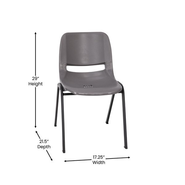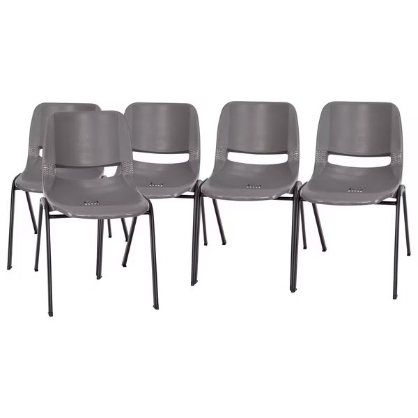 661 lb. Capacity Gray Stack Chairs-Black Frame, 5PK, Flash Furniture, Mfr#: 5-RUT-16-PDR-GY-GG