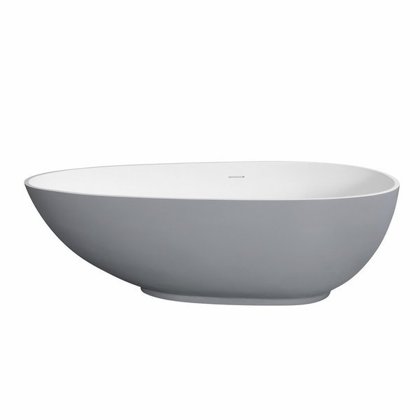 Elevate your home's contemporary decorum, while you effortlessly recline in the cozy embrace of a Kingston Brass freestanding bathtub. Highly acclaimed for its clean and contemporary yet minimalist shape, this tub will be made the focal point in many bathrooms. The Aqua Eden Arcticstone 67-inch egg shaped solid surface freestanding tub wholly beautify your home for years to come thanks to its durable and scratch resistant solid surface white stone construction. This bathtub's exterior is finished in a sultry matte grey to bring a uniquely sensual designer influence into your space, while its interior and inner rim are a polished glossy white to ensure simple care and cleaning over time.