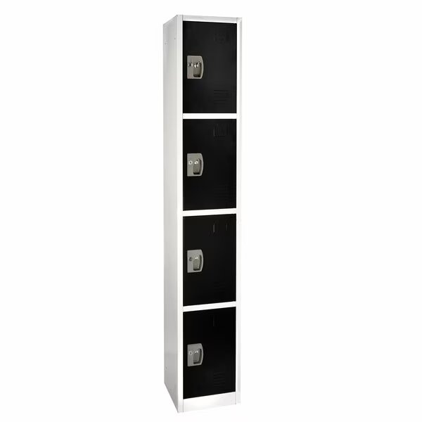 The AdirOffice Steel Four Compartment Tier Key Lock Storage Locker will also be warmly welcomed in school corridors, golf clubs, sports franchises, public safety, first responder and similar organizations where secure storage for participants is essential. AdirOffice storage lockers keep clutter off the floor and secure items within. The storage locker includes 4-shelved compartments and 4-hooks to store items. This is a 4 tier compartment storage locker with vents for air flow. Assembly required with provided hardware. Each door has 2-keys and option for user-provided combo- or padlock-enhanced security. The AdirOffice locker also contains a slot for names or numbers for personal or public use extends locker utility.