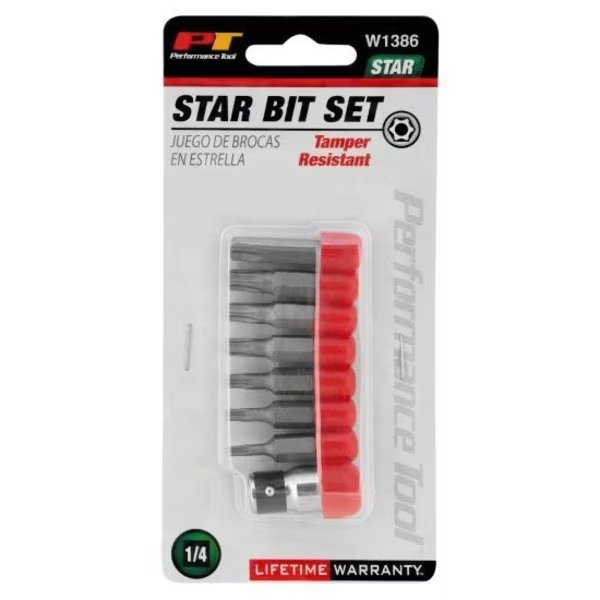 8-Pc Tamper Resistant Star Bit Set, W1386, Performance Tool, Mfr#: W1386
