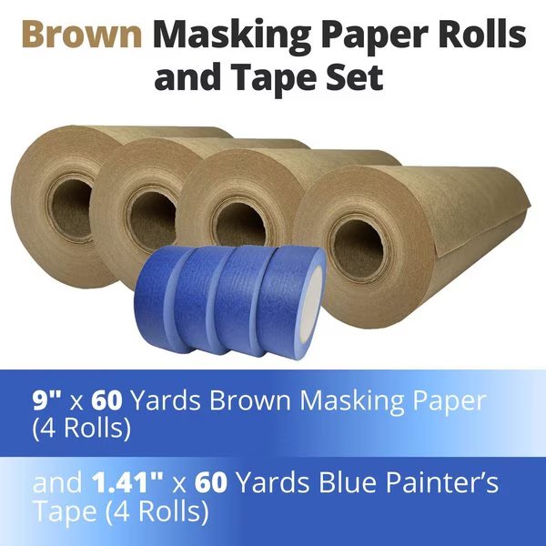 IDL Packaging Masking Kit includes: 4 Rolls of GP Masking Paper, 9 inches x 60 yards; 4 Rolls of Painter's Tape, 1.41 inches x 60 yards.Masking paper for painting is a type of kraft paper, which has a strong resistance to moisture exposure. It is used to cover areas from water-based materials such as paint, solvent, and others. It is good to use painter's tape along with masking paper to protect your surfaces.Painter's tapes are an extremely useful piece of equipment used in stencil painting, carpentry work, and a wide range of other applications. This tape is excellent for adhering masking paper to any surface.Sure, you can only use paper rolls for surface protection. But, for good paper securing results, you should use painter's tape as well. To easily cover a large area use the TH-120 Hand Masking Paper/Tape Dispenser. It simplifies all operations and helps to get the dreary work done without extra effort. To make your purchase easy, we collected the most popular kits of masking products. You can choose any of them suits your project.Thank you for choosing our products and good luck with your project!