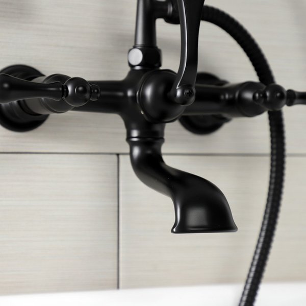 AE551T0 7-Inch Wall Mount Tub Faucet with Hand Shower, Matte Black, Kingston Brass, Mfr#: AE551T0