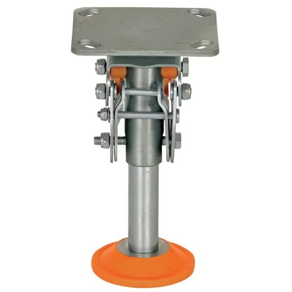 Abrasion-Resistant Nonmarking Floor Lock, 8 5/16 in For Caster Mounting Height, 8 5/16 in Floor Lock Retracted Height, 9 7/16 in Floor Lock Extended Height, 8 in For Wheel Dia., B Mounting Plate Bolt Hole Pattern, 3-15/16 in x 4-1/2 in Mounting Plate Size, Steel, 2-9/16 in x 3-3/16 in Inside Bolt Hole Spacing, 3-1/16 in x 3-11/16 in Outside Bolt Hole Spacing