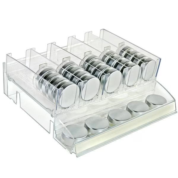 Adjustable Tall Divider Bin Cosmetic Tray with Tester on Front and Spring Pushers, Clear, 2-Pack, Azar Displays, Mfr#: 225840-TESTER-TALL-2PK