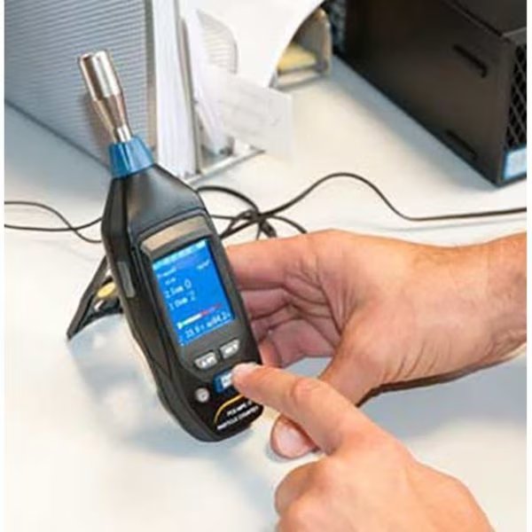 Air Quality Monitoring Particle Counter Portable handheld device for monitoring particulate matter (PM) concentrations in the air / 2.5 μm and 10 μm particle sizes / Measures air temperature and relative humidity / Internal memory. Temperature measuring range: 0 ... +50 °C / +32 ... +122 °F. Humidity measuring range: 0 to 100 % RH. 2" full-color LCD with user-friendly graphics. 220 x 176-pixel display resolution. Displays temperature in degrees Celsius (°C) or Fahrenheit (°F). Powered by rechargeable battery or AC power (via USB port). Portable handheld design for indoor air quality (IAQ) monitoring in the field and on the go. Features an internal memory for storing up to 5000 data sets.