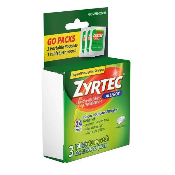 Allergy Tablet 3 Count, PK72, Zyrtec, Mfr#: 3020452