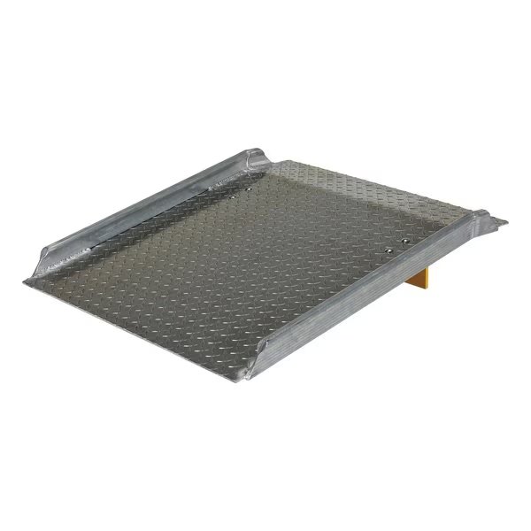 | Features | Lightweight design is ideal for foot or hand truck traffic. Beveled entrance and exit edges provide smooth transition. Tread plate surface ensures skid-resistant safe traction. Bolt-on locking legs and lifting handles for OSHA compliance |