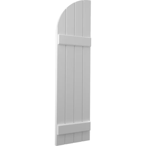 Americraft 4-Board (2 Batten) Wood Joined Board-n-Batten Shutters w/ Arch Top, ARW101BQ414X35PRH, Ekena Millwork, Mfr#: ARW101BQ414X35PRH