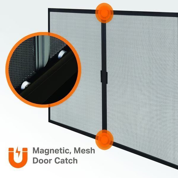 • Rigid mesh screen panels with catch magnets help keep embers and sparks contained