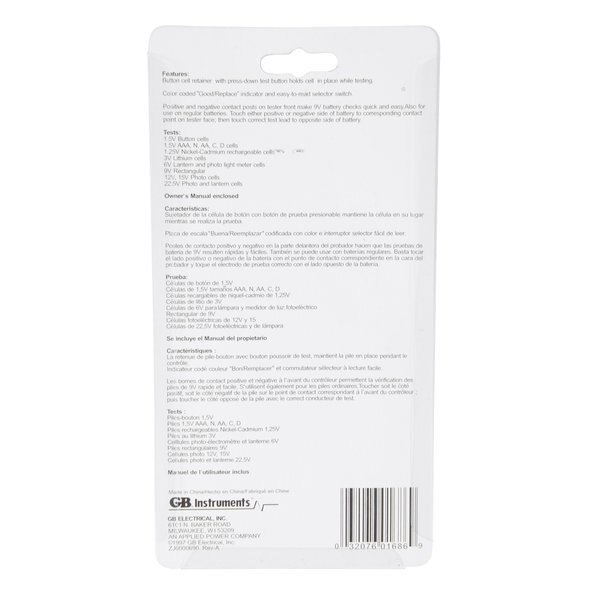 Analog Battery Tester, 1.5V to 22.5V, Gardner Bender, Mfr#: GBT-500A