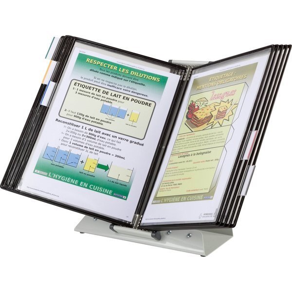 Tarifold Desktop Reference and Display System with Stainless Steel Base and Mount Plate 10 Antimicrobial White-Frame Letter-Size Display Pockets