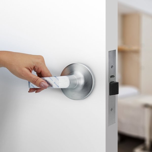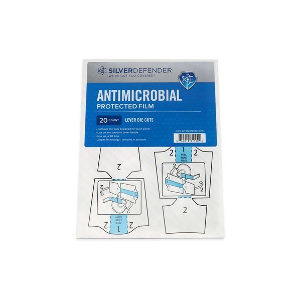 Antimicrobial Film Tape, Die Cut, For Use On Lever Door Handle, 3.5 in, 5.3 in, 2 mil, Silver Defender(R), Effective Lifespan 2 yr, Blue/Transparent, Tape Backing Material Film, Tape Adhesive Material Acrylic, Minimum Tape Performance Temperature -25 Degrees F, Maximum Tape Performance Temperature 135 Degrees F, Specifications Met FDA Compliant, Package Quantity 100