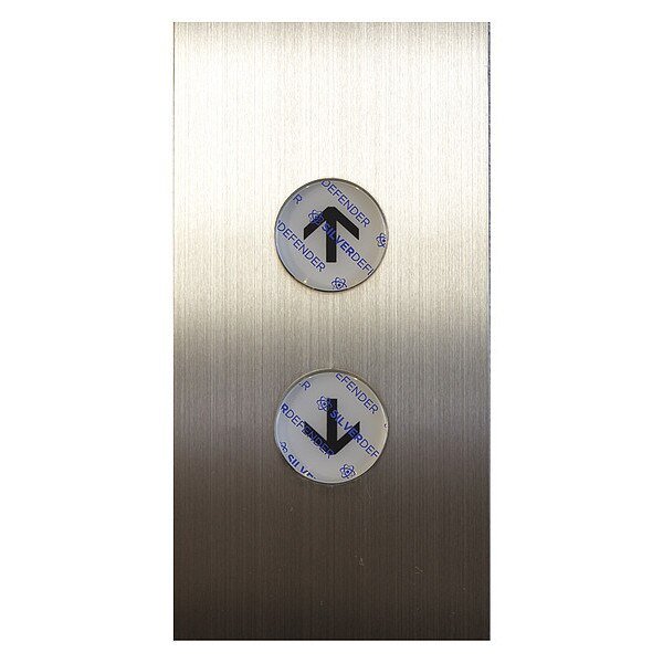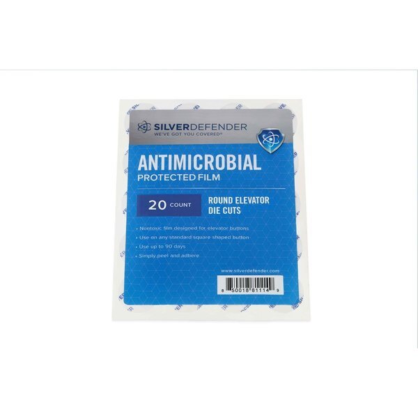 Antimicrobial Film Tape, Die Cut, For Use On Round Elevator Button, 0.9 in, 0.9 in, 7 mil, Silver Defender(R), Effective Lifespan 2 yr, Transparent, Tape Backing Material Film, Tape Adhesive Material Acrylic, Minimum Tape Performance Temperature -25 Degrees F, Maximum Tape Performance Temperature 135 Degrees F, Package Quantity 100