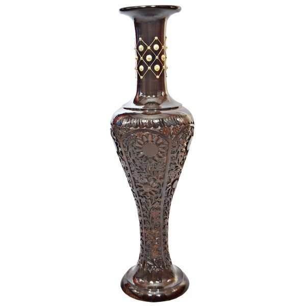 Antique Decorative Brown Hand Curved Mango Wood Floor Flower Vase with Unique Textured Pattern, 30", Uniquewise, Mfr#: QI004011