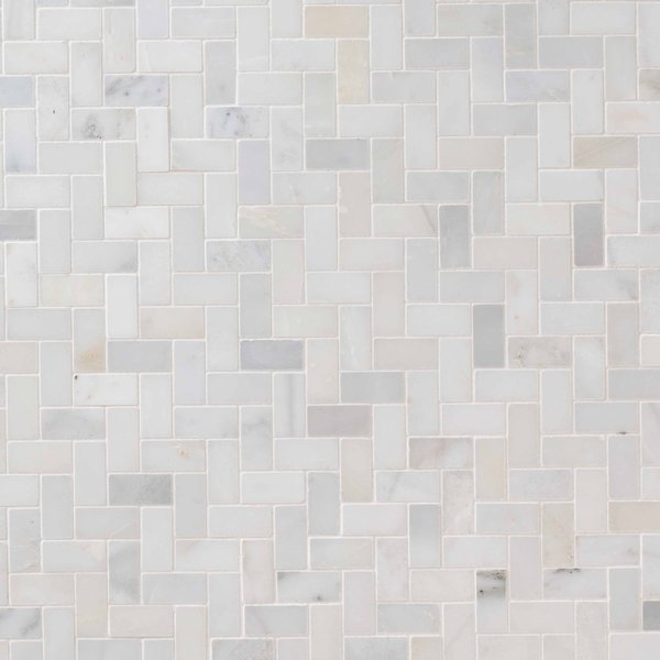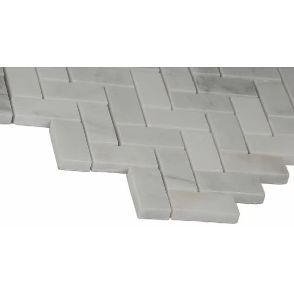 Add a splash of distinction to your decor with this honed marble mesh-mounted mosaic floor and wall tile. this grade tile lends a unique pattern to your floors, walls and countertops. the luxurious white marble pieces are sized on a mesh sheet for easy installation. this flooring option is designed with a smooth, polished finish and is perfect for bathroom and kitchen renovations. offering supreme style and strength, the impervious, frostesistant tile absorbs less than 0.5% percent. . note: inspect all tiles before installation. natural stone products inherently lack uniformity and are subject to variation in color, shade, finish etc. it is recommended to blend tiles from different boxes when installing. natural stones may be characterized by dry seams and pits that are often filled. the filling can work its way out and it may be necessary to refill these voids as part of a normal maintenance procedure. all natural stone products should be sealed with a penetrating sealer.