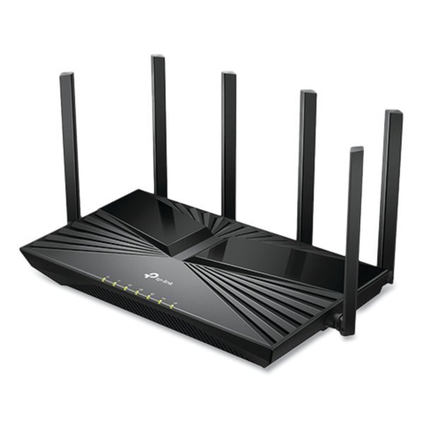 Enjoy stable Wi-Fi connections, even in the kitchen and bedroom, with this TP-LINK Archer AX4400 Wi-Fi 6 router. High-power FEM, six antennas, beamforming, and 4T4R structures combine to adapt Wi-Fi coverage to perfectly fit your home and concentrate signal strength towards your devices. Easily handle dozens of devices streaming and gaming at the same time: OFDMA and MU-MIMO combine to future-proof your home network by providing greater capacity to connect more devices. Measures 2 in. h x 10.3 in. w x 5.7 in. d.