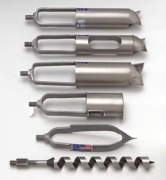 Auger, Mud, Dia. (In.) 4 in, Length 16 in, Features Two Openings in Cylinder Wall to Facilitate Empting., Material of Construction Carbon Steel Bail, Stainless Steel Cylinder, Connector Type 5/8 in Thread