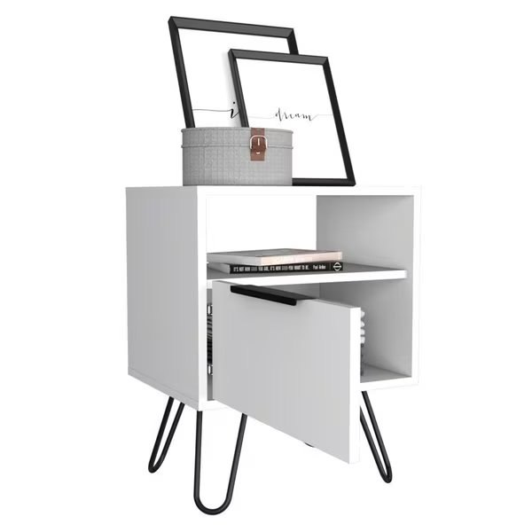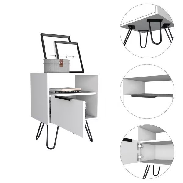 Augusta Nightstand, Single Door Cabinet, Hairpin Legs, White, Tuhome, Mfr#: MLB7034