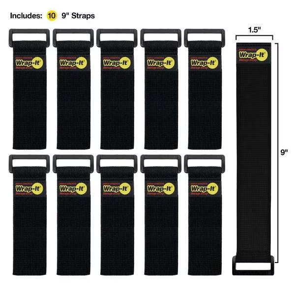 Back-to-Back Strap, No Adhesive, 9 in, 1 in Wd, Black, 10 PK, Wrap-It, Mfr#: A710-09B