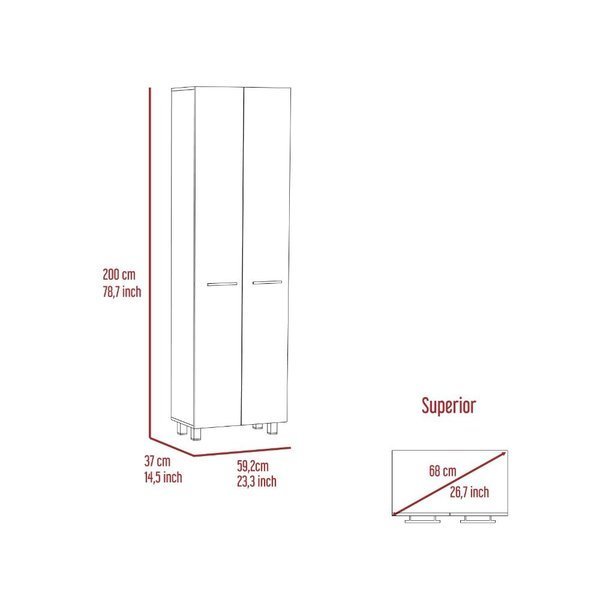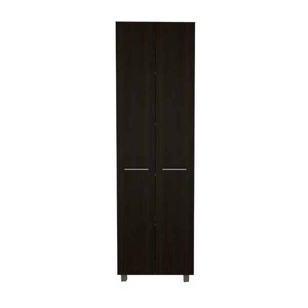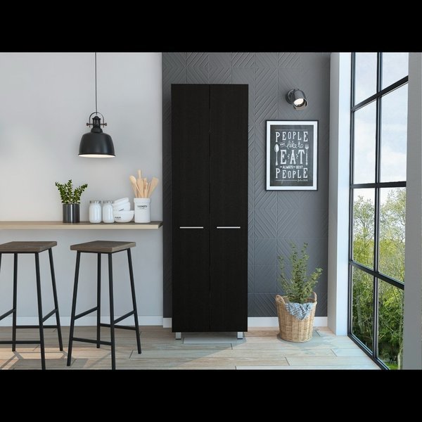 Streamline your space with the Baleare Pantry Cabinet. with ideal size 23,3 in. W X 14,5 in. D X 78,7 in. H. The Baleare can provide functionality in a bedroom, living room, office, or any other room that would need a large storage unit. With five shelves14,5 in. H X 20 in. W that sit neatly behind a Double Door cabinet. All metal doorknobs, hinges, and four legs provide an all-around better quality product. Functionality and style work in perfect harmony. Elegant black particleboard finish.