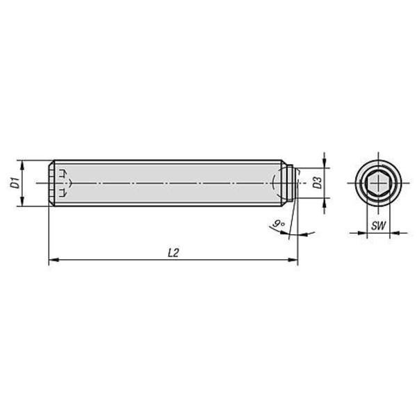 Ball-end Thrust Screws without head, with flattened ball, Kipp, Mfr#: K0383.20850