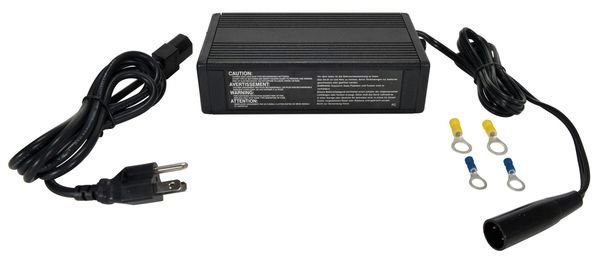 Battery Charger, Material Plastic, Plug Type Three Prong, Voltage 12V AC, Color Black, For Use With E-Cart, Overall Height 1 1/2 in, Overall Length 6 in, Overall Width 3 1/2 in