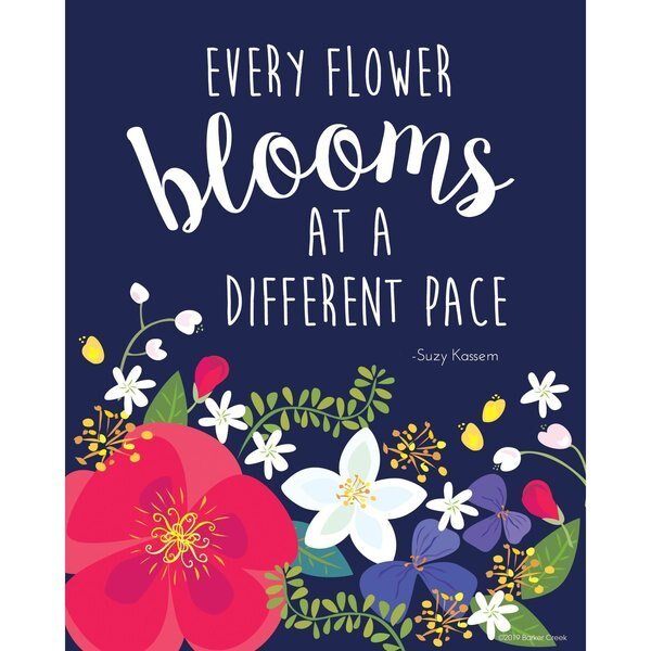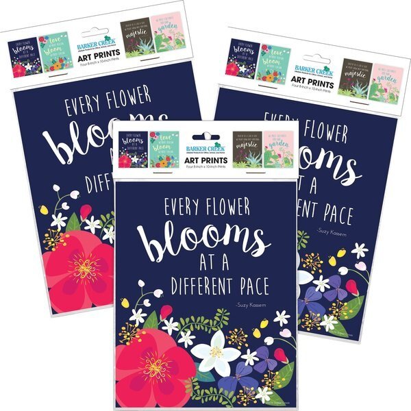 Barker Creek's Petals Prickles Art Prints Set include twelve 8 x 10 art prints three each of four prints These art prints are perfect for the classroom, workplace or home Frame them or hang them as is The designs feature vibrant colors with beautiful flowers of various size and colors along with cacti and succulents The navy art print features the quote Every flower blooms at a different pace by Suzy Kassem The chocolate brown art print features the quote Each of us is like a seed we might grow into something majestic by Seth Adam Smith The aqua art print features the quote Love without reason bloom without season by Debasish Mridha The blush pink art print features the quote We must cultivate our own garden by Voltaire Coordinating products available Search Barker Creek Petals Prickles