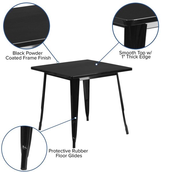 Black Metal Table, 31.5SQ, Flash Furniture, Mfr#: ET-CT002-1-BK-GG
