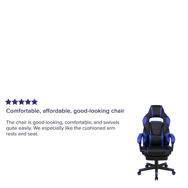 Black/Blue Reclining Gaming Chair with Footrest, Flash Furniture, Mfr#: CH-00288-BL-GG