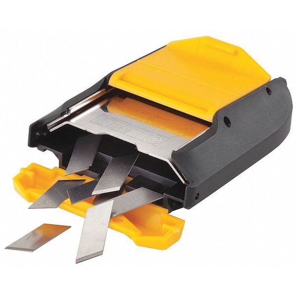 Blade Disposal Unit, Blade Disposal Type Blade Disposal Holster, Color Yellow, Compatible with Product Type Snap-Off Blades, Utility Knife, Features Acetone Resistant, Good Design, Material Plastic, Overall Height 3 1/2 in, Overall Length 3 in, Overall Width 1 1/4 in