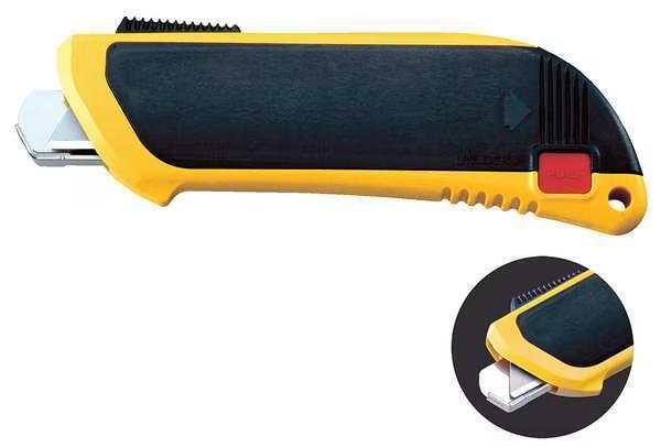 Blade Disposal Unit, Blade Disposal Type Blade Disposal Case, Capacity Approximately: (200) 9mm Blades / (2,600) Edges; (50) 18mm Blades / (400) Edges; (10) 25mm Blades / (70) Edges; (30) SKB Safety Blades; or (100) RSKB Safety Blades, Color Yellow, Compatible with Product Type Single Edge Razor, Snap-Off Blades, Utility Knife Blades, Features Push Open Type Lid for Safety Blade Snapping, Material Plastic, Mount Type Panel Mount, Wall Mount, Overall Height 5 in, Overall Length 1 1/8 in