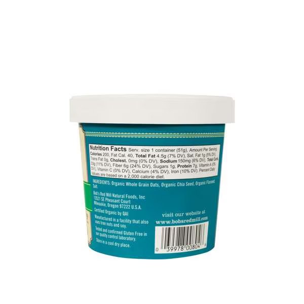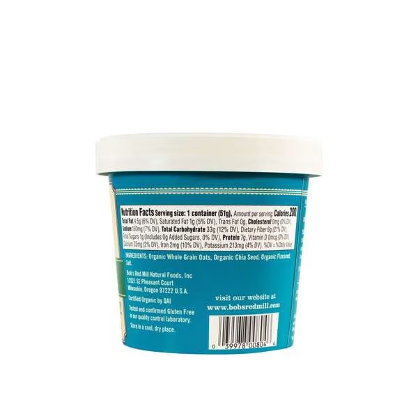 Bob's Red Mill Organic Classic Oatmeal Cup 1.8 oz. Cup