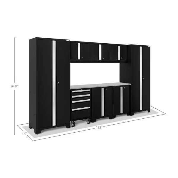 Bold Series 14 Piece Garage Cabinet Set w/Stainless Steel Top, Black, Newage Products, Mfr#: 63266