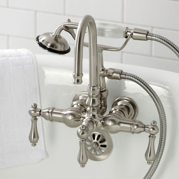 CA7T8 3-3/8" Tub Wall Mount Clawfoot Tub Faucet with Hand Shower, Brushed Nickel, Kingston Brass, Mfr#: CA7T8