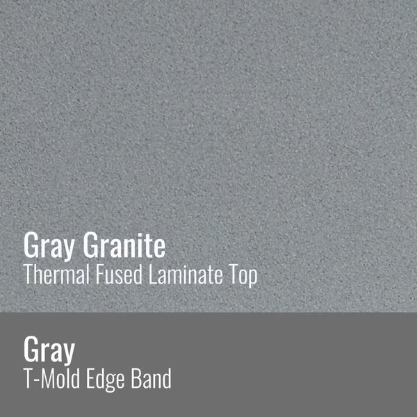 Correll Commercial Duty Top Folding Tables. 30"x72" Rectangular Gray Granite Thermal Fused laminate surface, resists scratches and stains and has a hard, flat writing surface. Thermal Fused Laminate (TFL) is a resin infused laminate not glued on like high pressure laminate, it is fused to the board using a heat treatment process. 3/4" thick top is sealed on both sides preventing moisture from entering the table and causing warping. Heavy duty 1" Steel legs and one piece Strong steel frame / apron supports the top. Automatic lock open folding legs helps to prevents accidents. Gray frame and T molding. Mar Proof plastic foot caps to help protect floors and T molding edge protects the table as well as your walls. Heavy Duty construction, Ideal in public and commercial spaces including schools and places of worship. You Can Count On Correll: Correll was established in 1969 and has been in business for over 50 years. With our outstanding Standing Customer Service, innovative new product lines, and the largest selection of Folding Tables available from any manufacturer, now, more than ever, you can count on Correll.