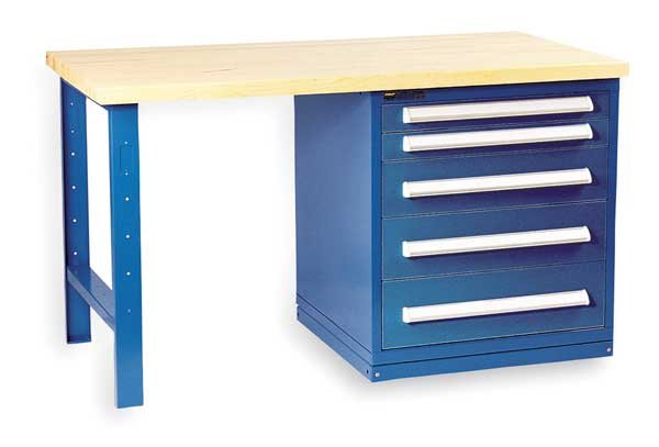 Cabinet Pedestal, Assembly Fully Assembled, Color Blue, Features Adjustable Dividers, Adjustable Partitions, All-Welded, Stand-Alone, Finish Powder Coated, For Use With Bench Stock, Includes Lock, Lock Type Keyed, Material Steel, Maximum Drawer Load Capacity 400 lb, Number of Compartments 96, Number of Drawers 5, Overall Depth 27 3/4 in, Overall Height 33 in, Overall Width 30 in, Pedestal Type Cabinet, Weight 330 lb