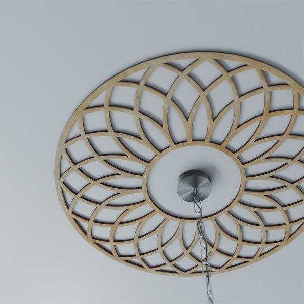 Available in paint-grade, oak, cherry, alder, walnut, hickory, and birch allowing for great versatile and durable usage. The natural wood tones evoke luxury and sophistication in any space. You can leave your design mark with unique and inspiring effects on your walls, ceilings and more. Our easy-to-install wood medallions can turn a fixture or ceiling fan into a work of art in no time at all. Our distinctive pierced wood medallions add instant value to your home and stand apart from everything else on the market.Clean and modern designs, expertly laser cut wood veneer over a MDF core.