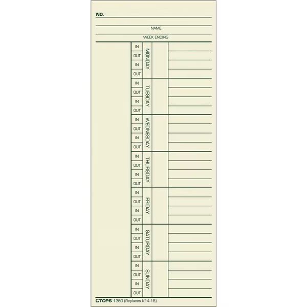Card, Time, Wkly, 3.37X8.25 Pk, Tops, Mfr#: TOP1260