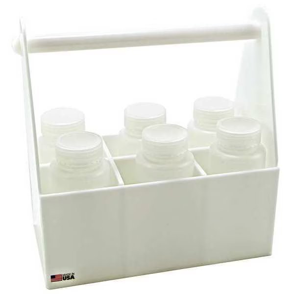 Bottle Carrier, For Use With 1000mL Bottle, Number of Compartments 6, Material HDPP, Color White, Width 8 in, Length 14 1/2 in, Includes Not Applicable, Container Height 6 in, Overall Height 15 1/4 in