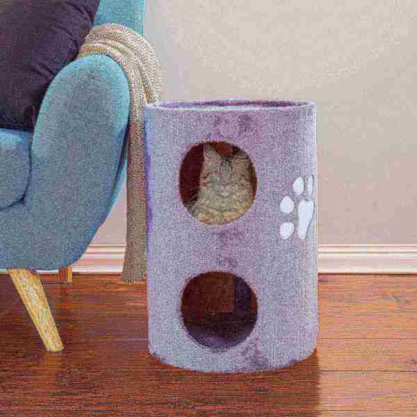 The Pet Adobe 2 story Cat Condo with scratching surface is covered with soft plush fabric and provides 3 comfortable places for your cats to rest and play. The attractive condo provides 2 spacious, covered, hiding places for when your cats want privacy and security and has a comfortable top platform for when they want to play and rest. The back side of the barrel is covered with a jumbo-sized scratching surface. No assembly is required. The soft plush fabric is easy to clean and will look great in any home.