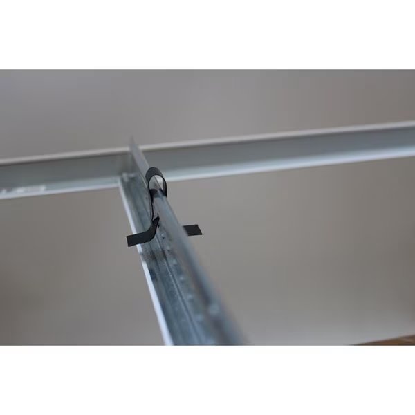 Designed to lock on top of ceiling grid after adjacent ceiling tiles are dropped in for holding down acoustical tiles in drafty entranceways and low security areas After inserting adjacent tiles slide clip over Tbar until base of clip makes contact with tile To move or remove clip insert a large flat screwdriver in the top of the clip and turn slightly to open mouth of clip enough to free it from Tbar