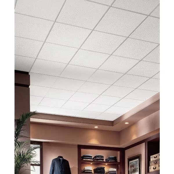 Ceiling Tile, Edge Type Angled Tegular, Grid Size 15/16 in, Overall Length 24 in, Overall Width 24 in, Ceiling Attenuation Class 35, Fire Retardant Class Class A, Light Reflectance 81 Percent, Noise Reduction Coefficient 0.5, Recycled Content 56 Percent, Texture Fine, Application Libraries, Music Rooms, Color White, Coverage 64 sq ft, Features 10-Year Replacement Panel, 30-Year Limited System Warranty Against Visible Sag, Mold and Mildew, Material Mineral Fiber