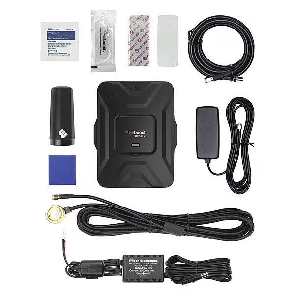 Signal Amplifier, Signal Type 5G, Maximum Gain 50 dB, Operating Voltage 6V DC, Number of Users Multiple, Coverage Area 1,500 sq ft, Includes 12V Hardwire Power Supply, 14 ft Cable, 3/4 in NMO Mount, 6 ft RG58 Extension Cable, Drive X, Hole Drilling Protective Tape, O-Ring Sealant, Series Not Applicable, Antenna Mounting Location Interior, Antennas Included Low Profile Antenna, NMO Antenna, Connector Type SMA-Female Connectors, Current 2.5 A, Frequency 2,100 MHz