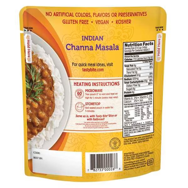 Channa Masala 10 oz., PK48, Tasty Bite, Mfr#: 00026