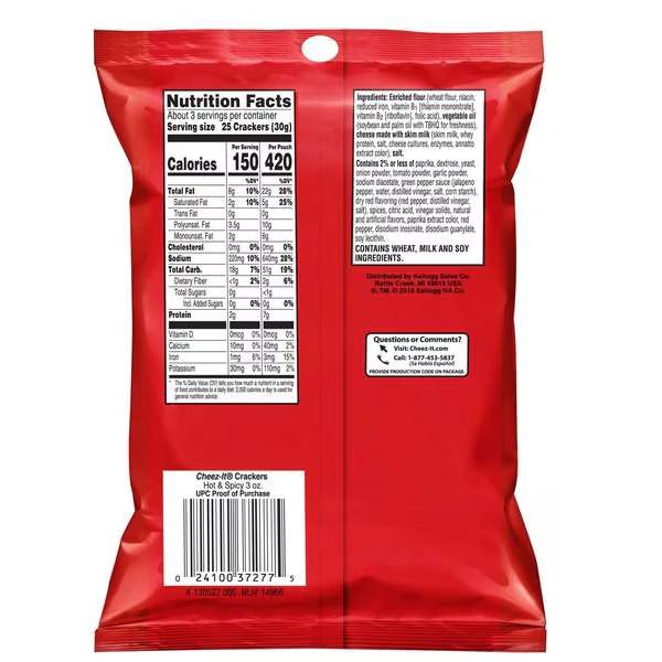 Cheez-It Hot & Spicy Cheez-It Snack 3 oz. Bag