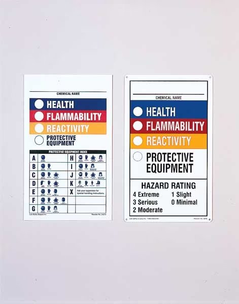 | Legend | Chemical Name, Health, Flammability, Reactivity, Protective Equipment, Hazard Rating |