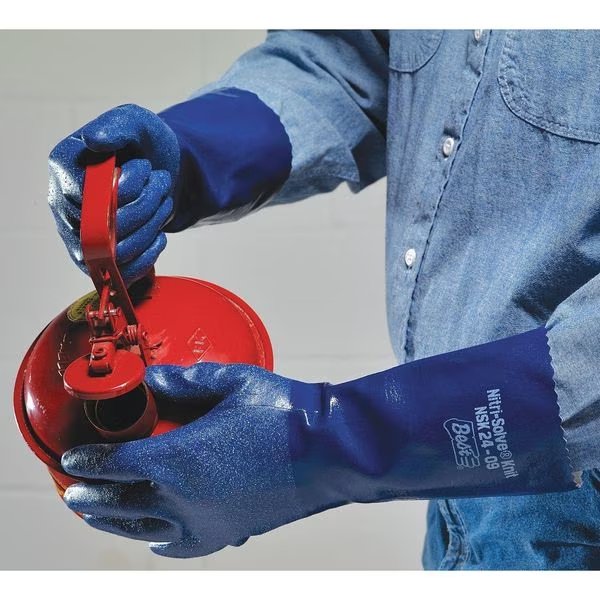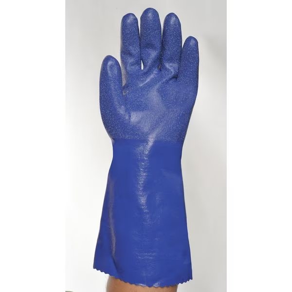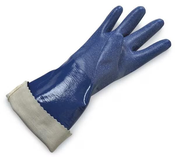 Chemical Resistant Gloves, Nitrile, Fully, 15 mil, 14 in, Cuff Gauntlet, Lining Interlock Knit, Glove Size 11, Color Blue, Supported, Standards CE Rated, EN 388:2016 4112X, EN ISO 3374-1:2016/Type A JKLOPT, EN ISO 374-5:2016, Resists Abrasion, Alcohols, Caustics, Puncture, Solvents, 1 Pair
