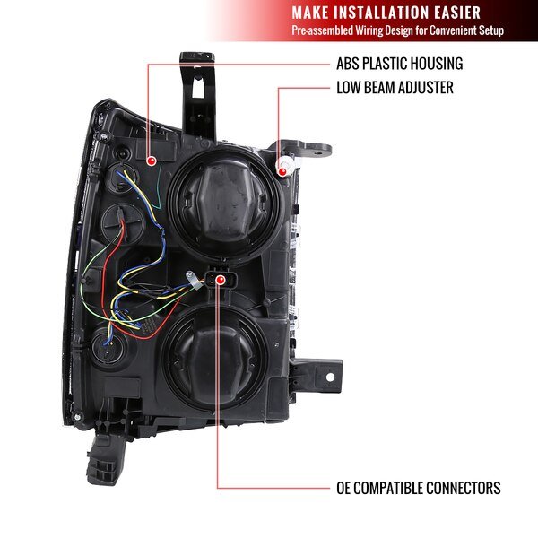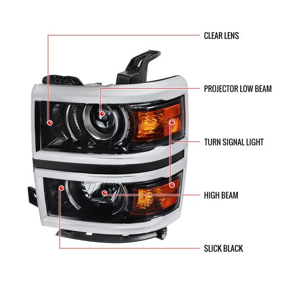 Chevrolet Silverado Projector Headlights 2014-2015, Spec-D Tuning, Mfr#: 2LHP-SIV14BK-C-GO